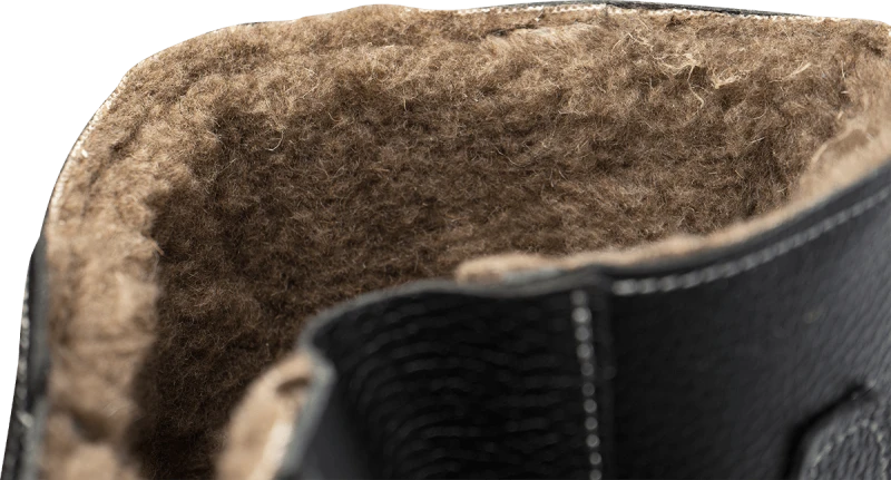 -Утеплитель: шерстяной мех (основа - трикотаж, ворс - натуральная овечья шерсть 80% + синтетика 20%).