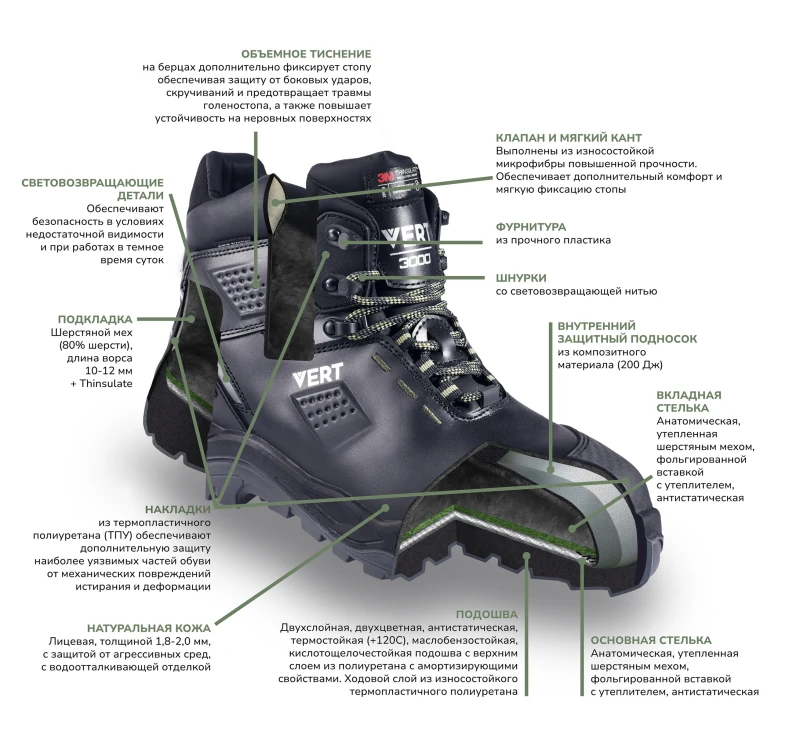 Покупайте Ботинки VERT (VERT 3015) с КП и КС Thinsulate® шерст.мех, кожаные ПУ/ТПУ по цене 6435 руб. оптом или в розницу в магазине спецодежды СнабТим. Большой выбор защитной одежды, СИЗ и других хозтоваров в Альметьевске. Заказывайте онлайн или по телефону +7 (991) 190-59-22