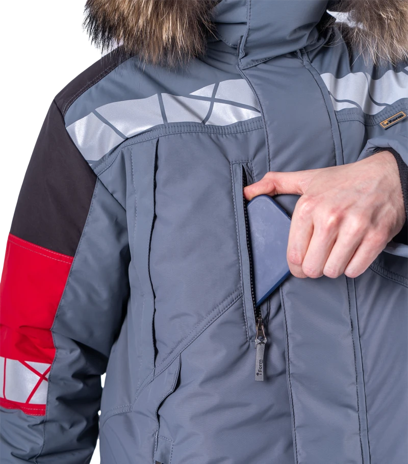 Куртка мужская ХАЙ-ТЕК SAFETY от пониженных температур воздуха и ветра, механических воздействий и ОПЗ, серый/красный/черный