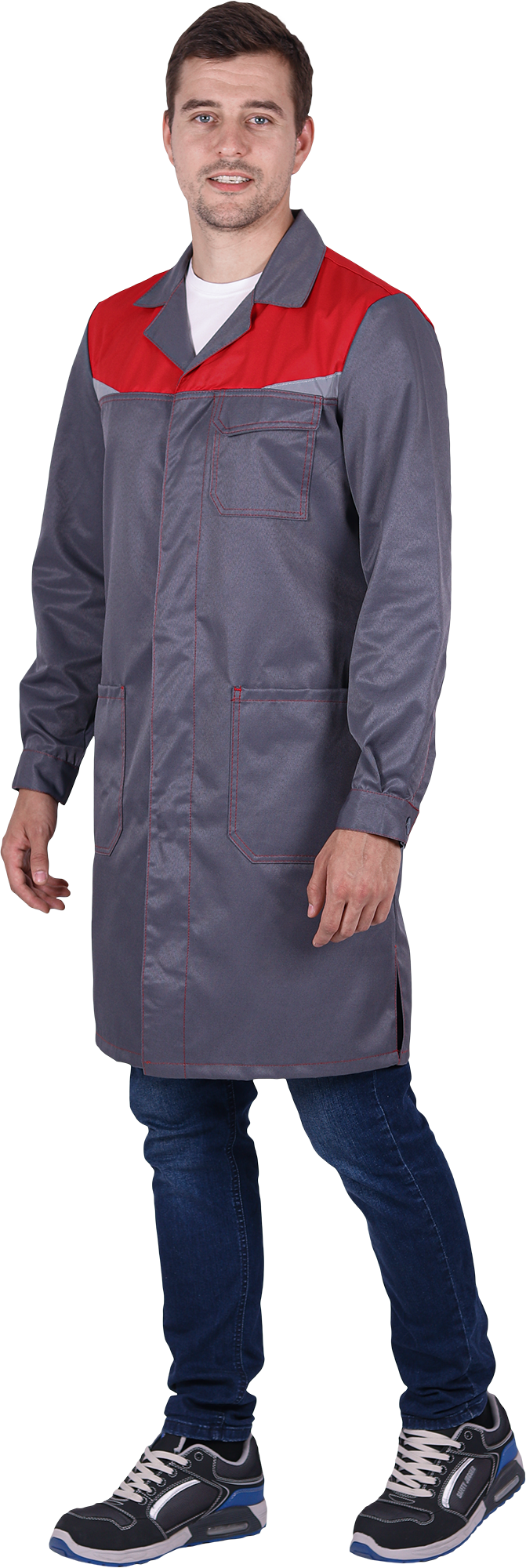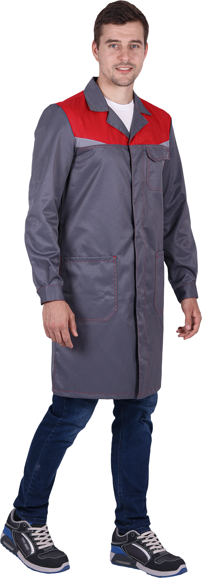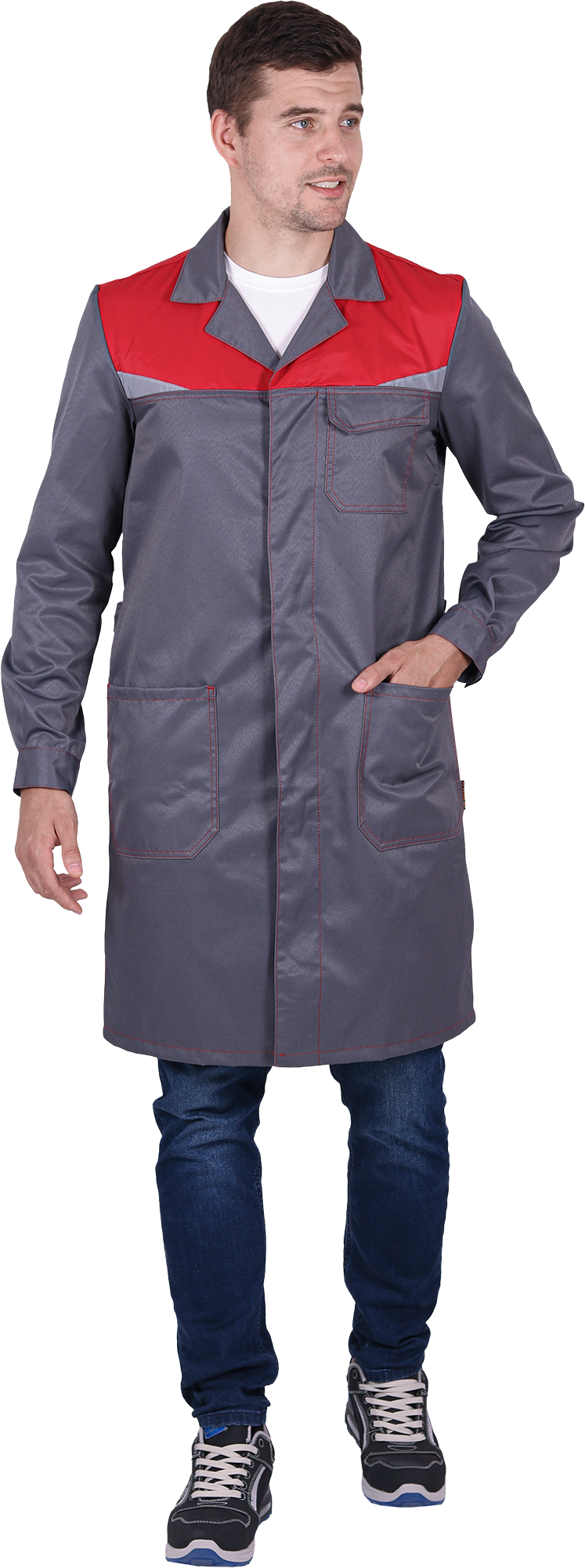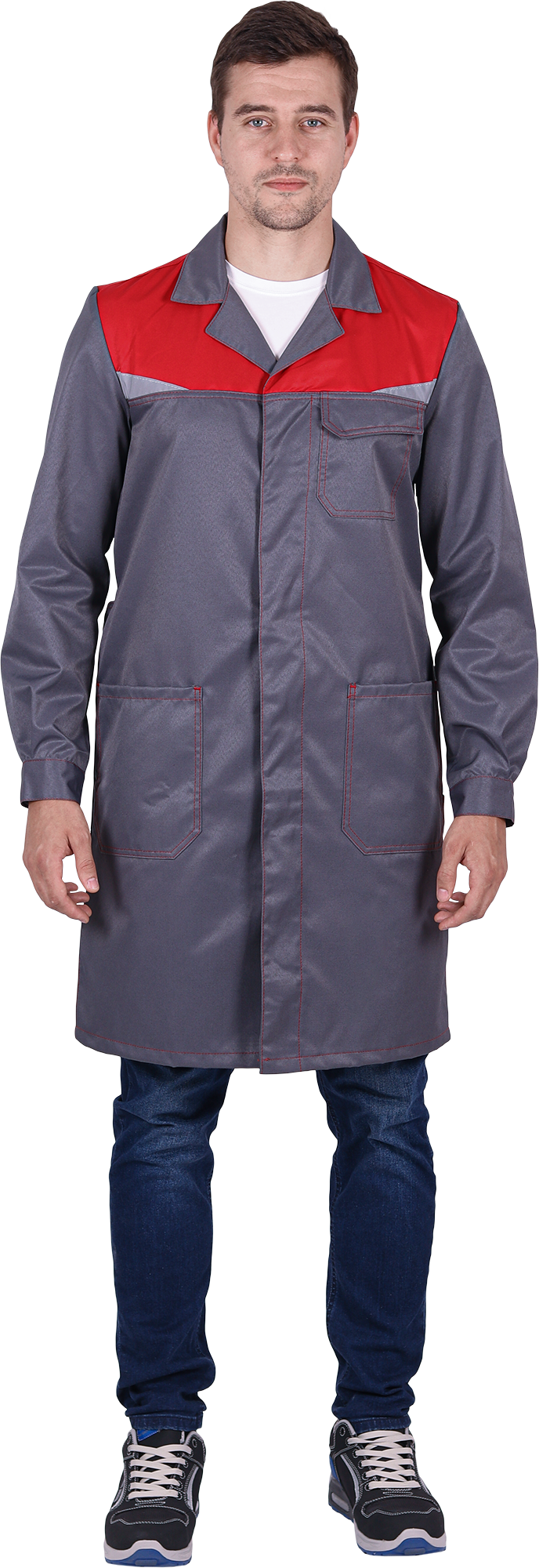Халат мужской КМ-10 ЛЮКС от механических воздействий и ОПЗ, серый/красный