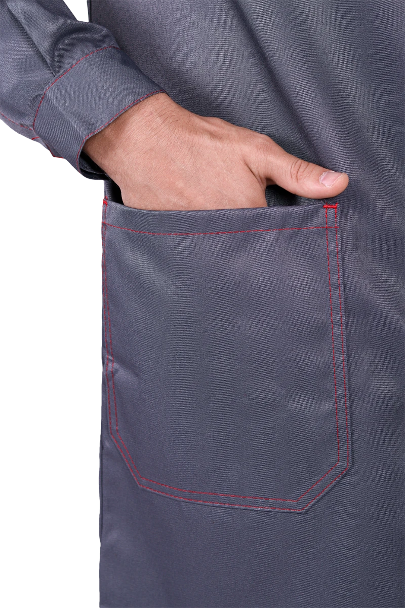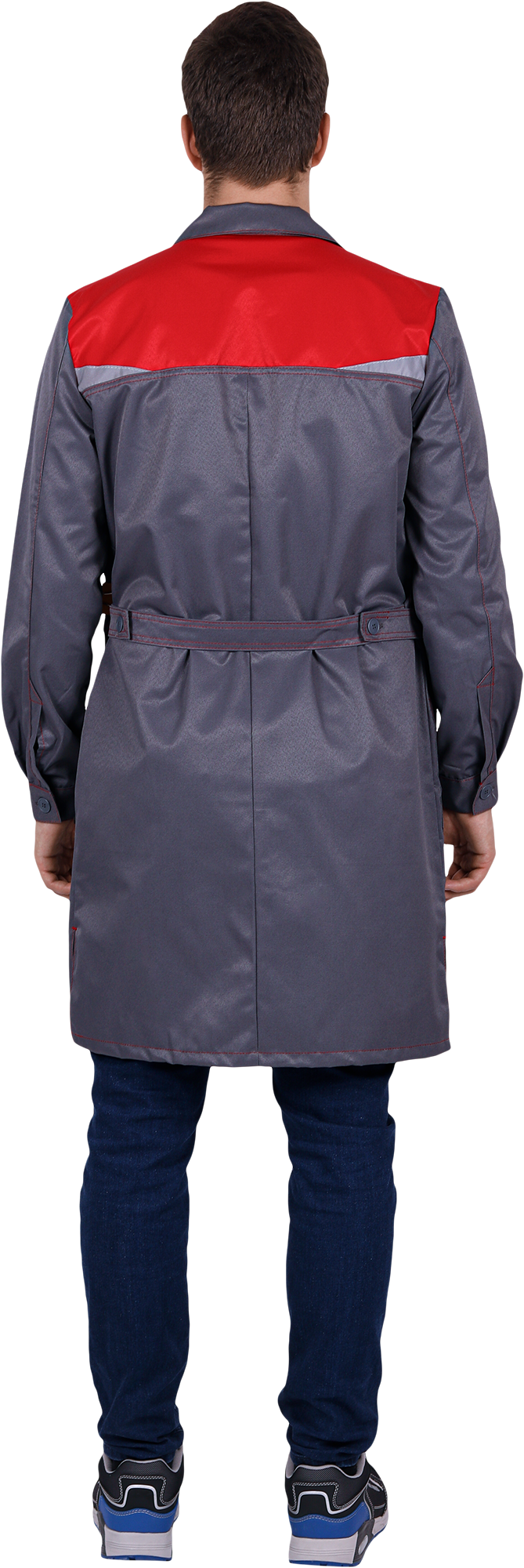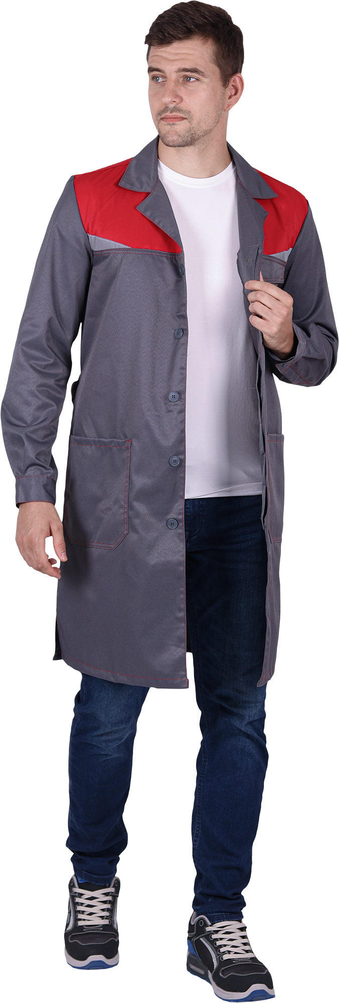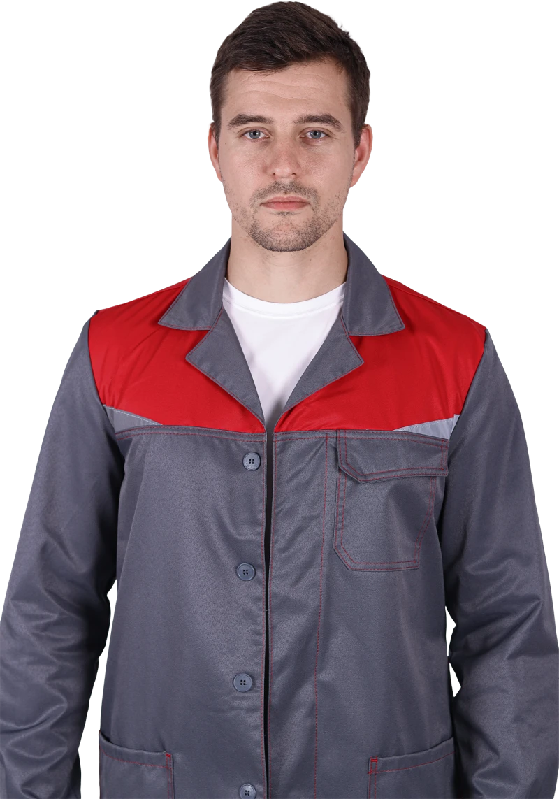 Халат мужской КМ-10 ЛЮКС от механических воздействий и ОПЗ, серый/красный