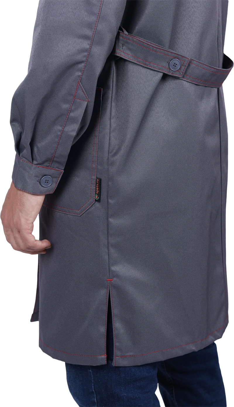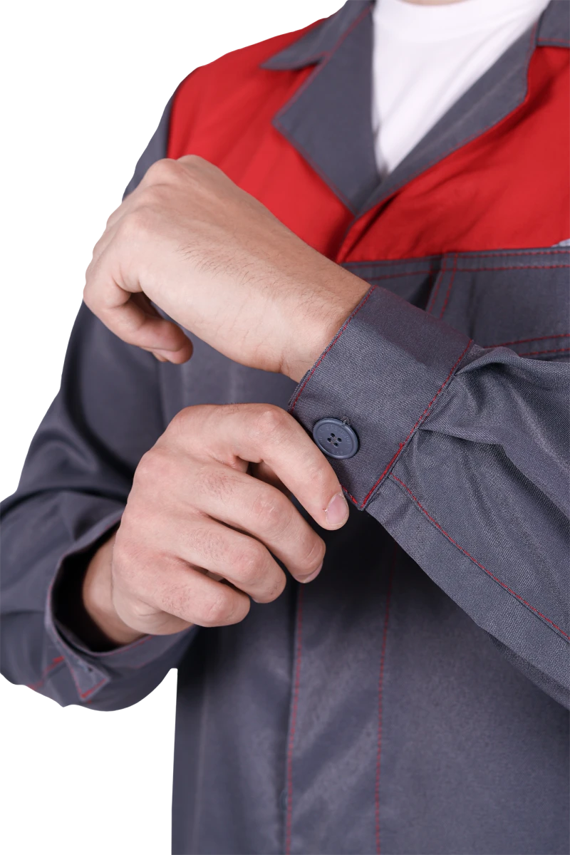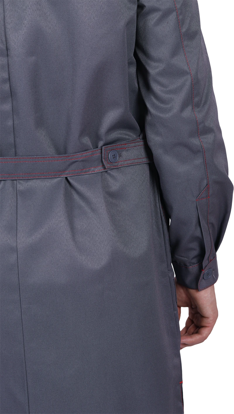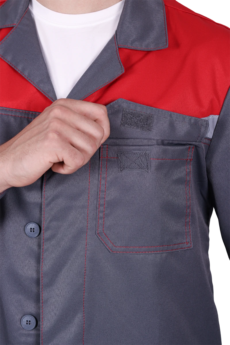 Халат мужской КМ-10 ЛЮКС от механических воздействий и ОПЗ, серый/красный