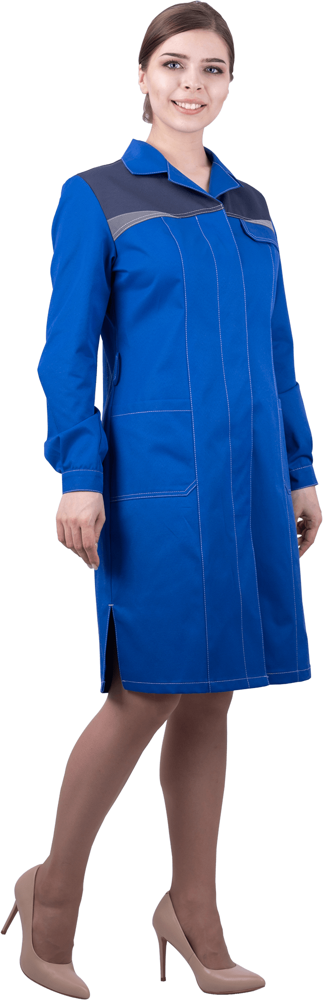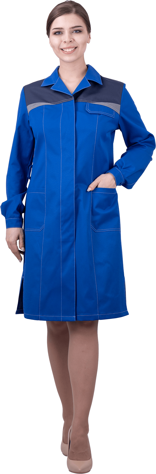 Покупайте Халат женский КМ-10 ЛЮКС от механических воздействий и ОПЗ, василёк/темно-синий по цене 2235 руб. оптом или в розницу в магазине спецодежды СнабТим. Большой выбор защитной одежды, СИЗ и других хозтоваров в Альметьевске. Заказывайте онлайн или по телефону +7 (991) 190-59-22