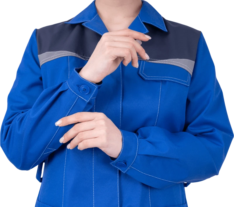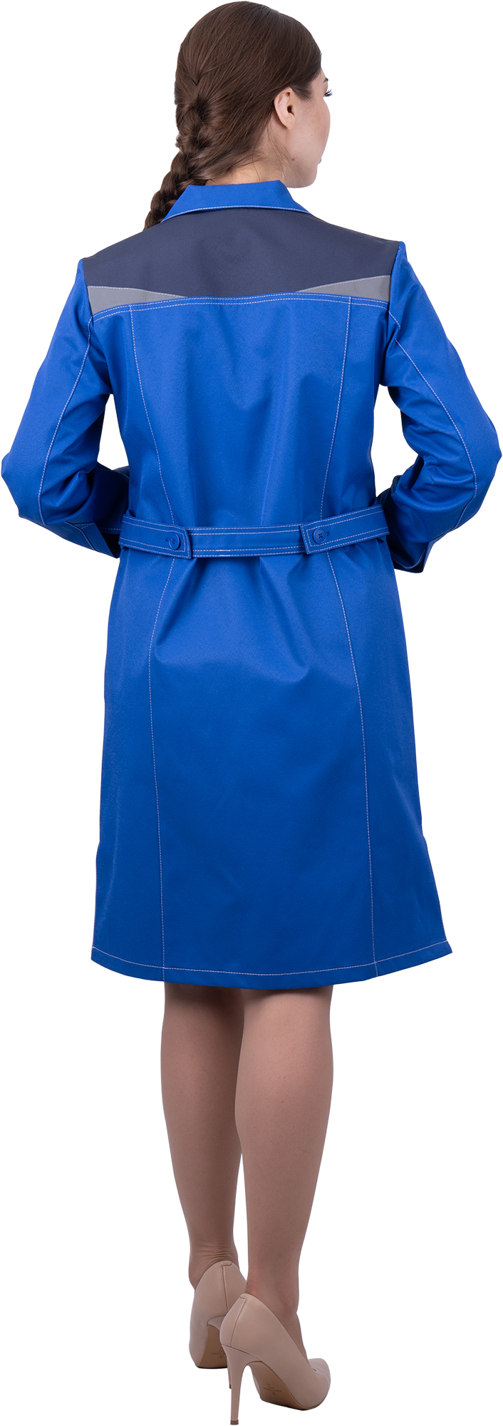 Халат женский КМ-10 ЛЮКС от механических воздействий и ОПЗ, василёк/темно-синий