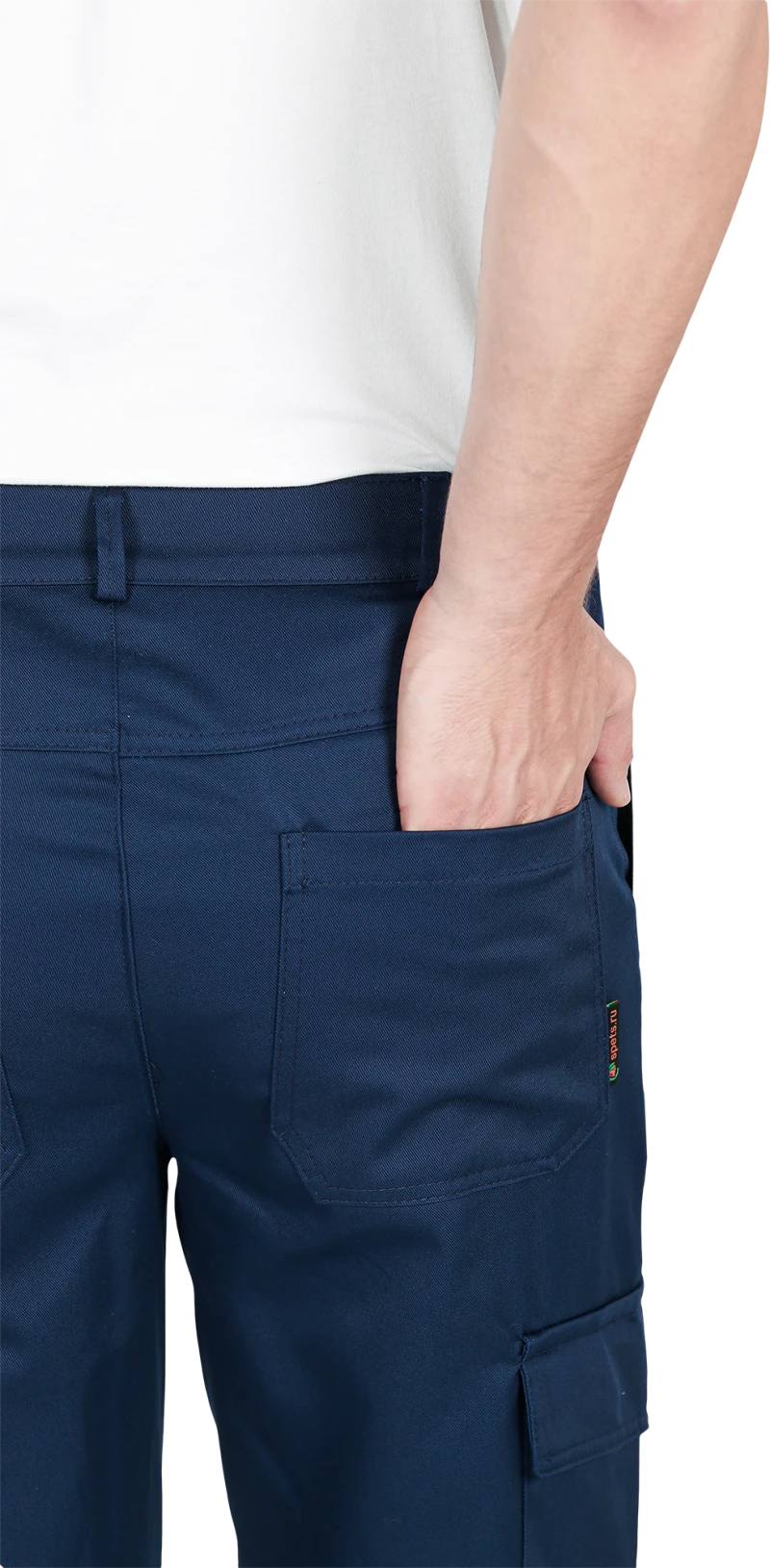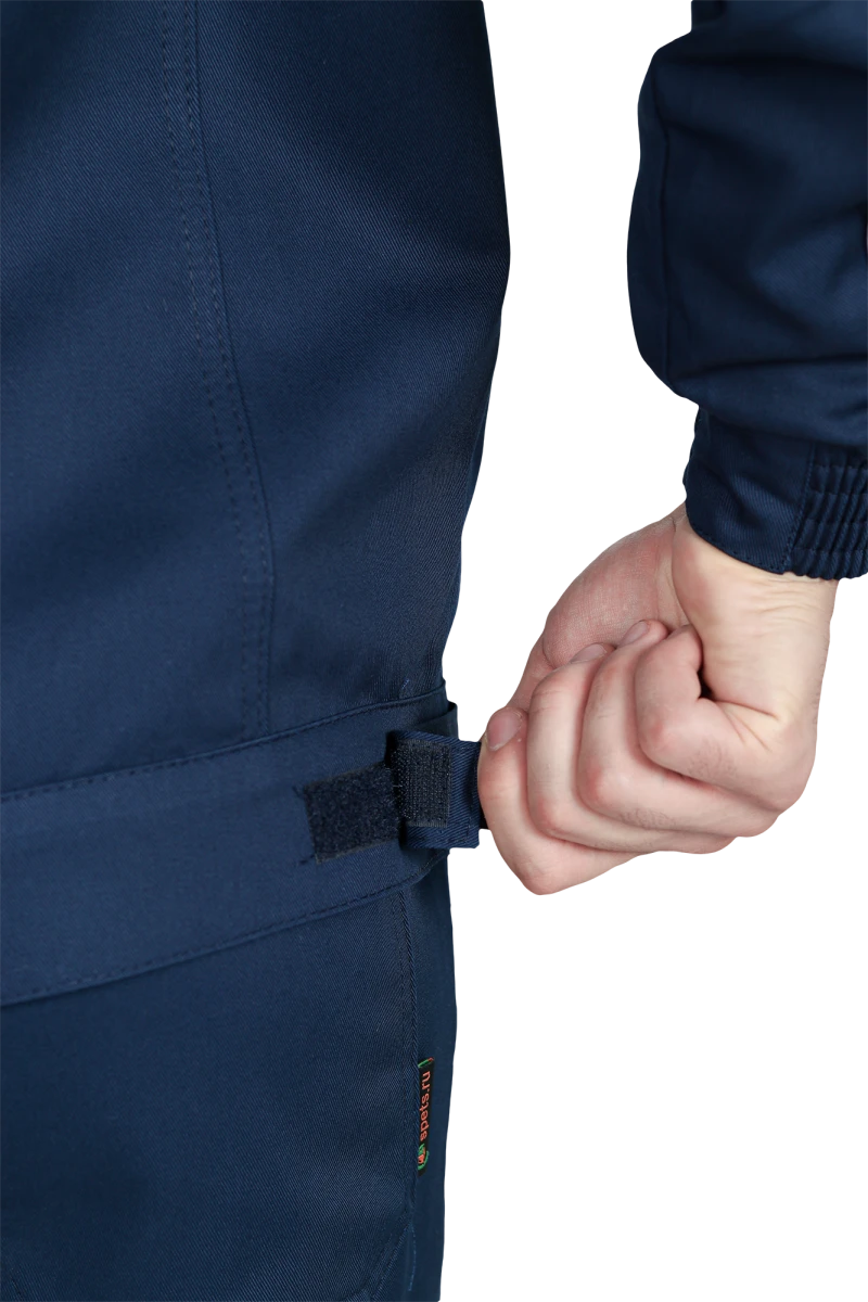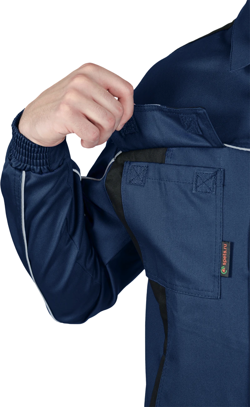 Костюм состоит из куртки и брюк.Со световозвращающим кантом по нижнему краю кокеток полочек и спинки,по переднему и локтевому швам рукавов, по нижнему краю наколенников.Куртка:• прямого силуэта с притачным поясом• спинка и полочки с кокетками• центральная застёжка на молнию• ветрозащитный клапан с текстильной застёжкой• отложной воротник• нагрудные накладные карманы с клапанами с текстильной застёжкой• нижние накладные карманы с наклонным входом• рукава трёхшовные с манжетами• манжета рукава частично с эластичной лентой• ширина куртки внизу регулируется патами на поясеБрюки:• пояс частично с эластичной лентой на уровне боковых швов• застёжкой-гульф на молнию• наколенники с карманом для амортизаторов• боковые карманы с наклонным вход