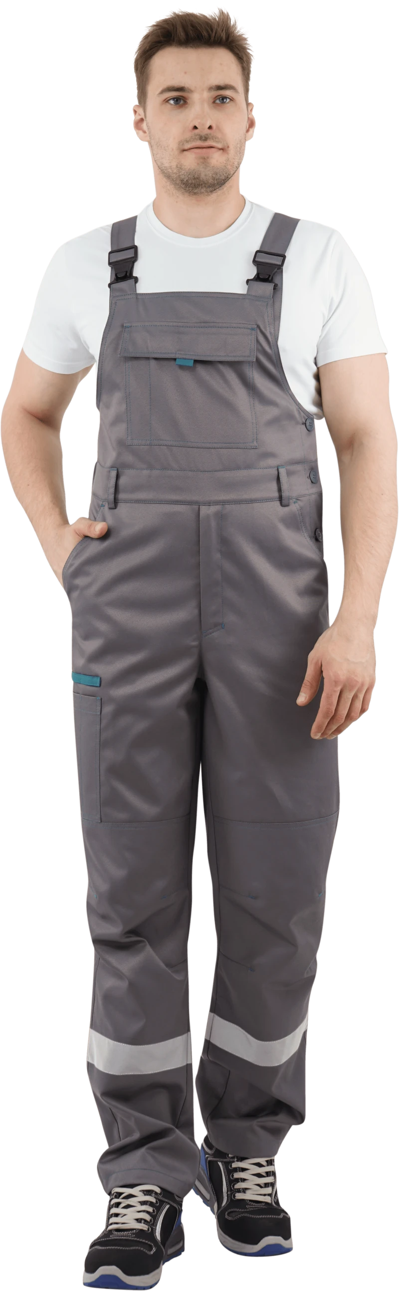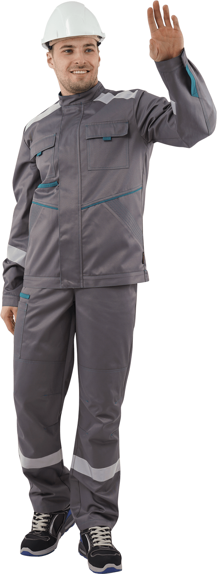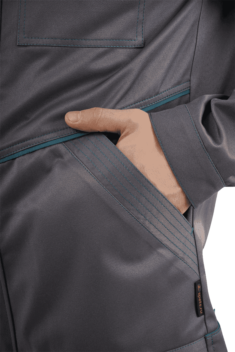 Костюм мужской ГАЛАКТИКА от механических воздействий и ОПЗ (куртка, полукомбинезон), серый/бирюзовый