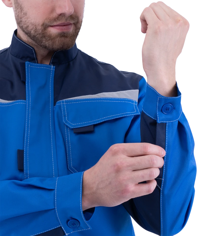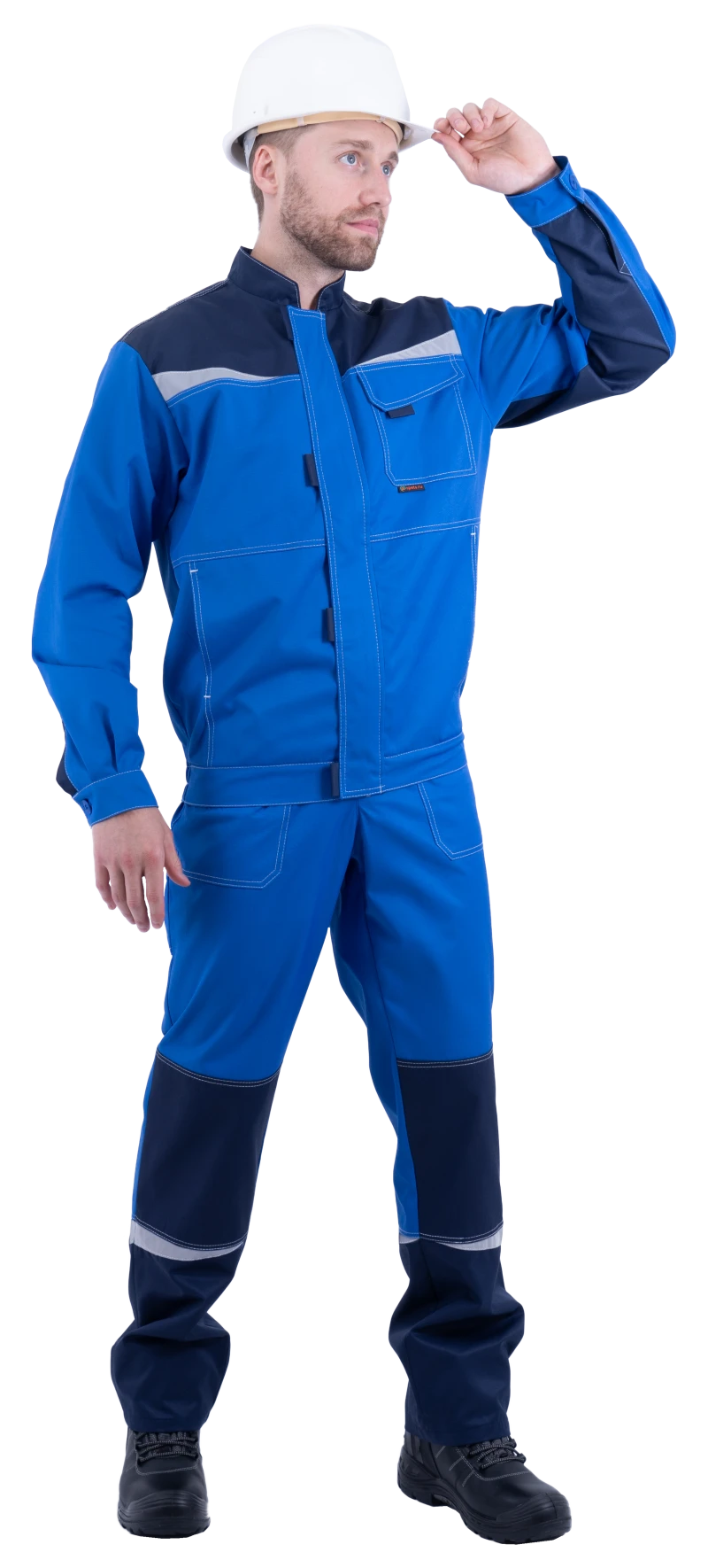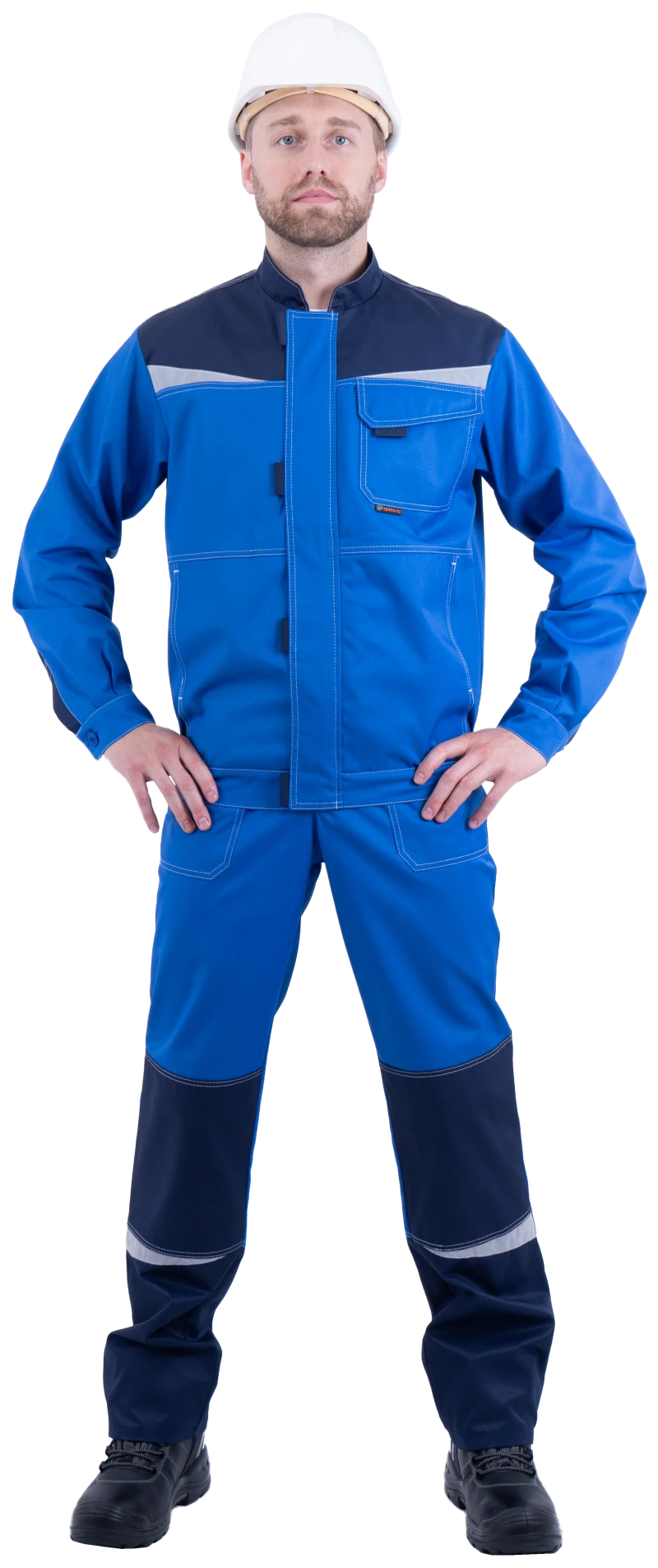 Костюм мужской КМ-10 ЛЮКС от механических воздействий и ОПЗ (куртка, полукомбинезон), василек/темно-синий