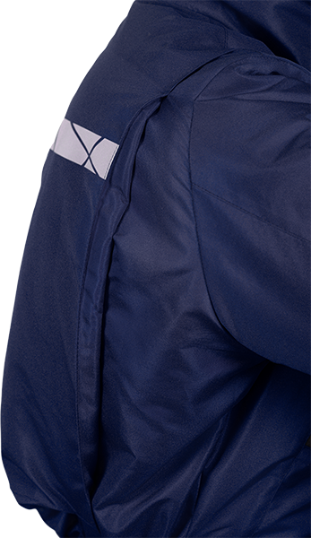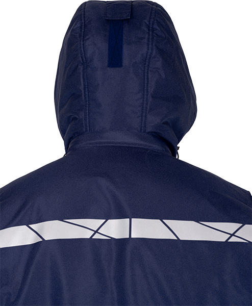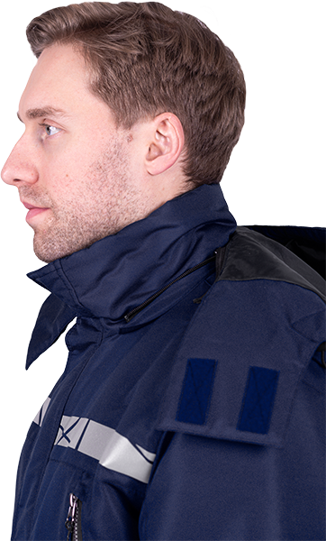 • термоклеевые световозвращающие полосы шириной 30 мм на кокетках полочки и спинки, внизу рукавов, брюк, на центральной части капюшона