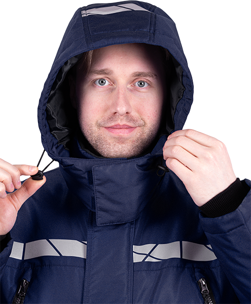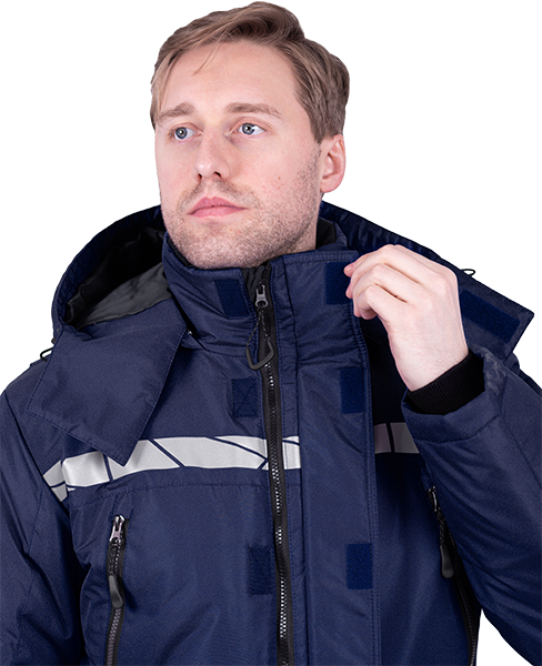 • съемный утеплённый капюшон с эластичным шнуром по лицевому вырезу