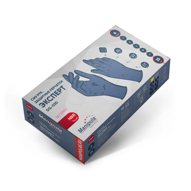 Перчатки ЭКСПЕРТ (DG-030), нитрил/неопрен, 0.23 мм, неопудренные, текстурированные, цвет синий