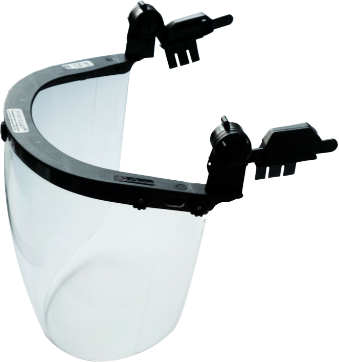 Крепление щитка к защитной каске осуществляется за счет поворотно-фиксирующего устройства, изготовленного из термостойкого материала, устойчивого к износу и гарантирующего надежную фиксацию лицевого щитка в двух положениях «вверх-вниз».