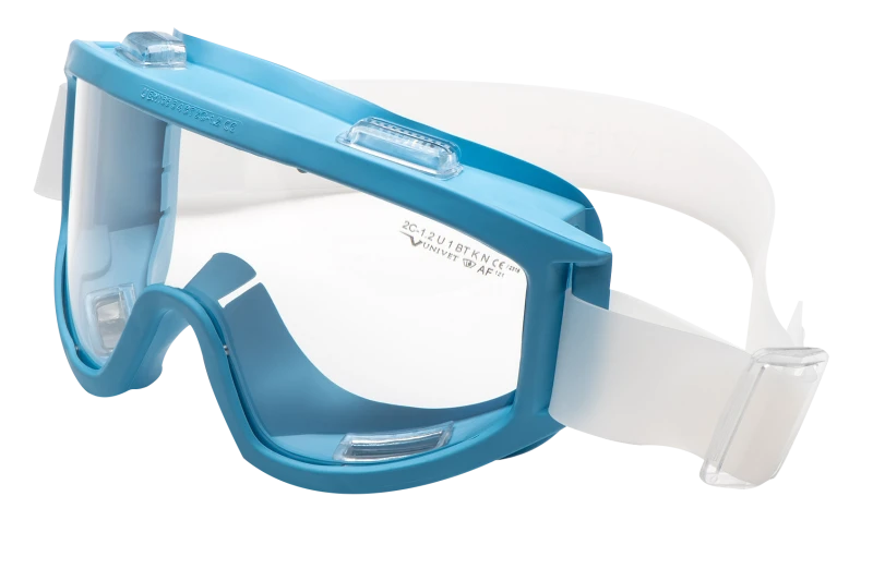 Очки закрытого типа, прозрачная поликарбонатная линза.